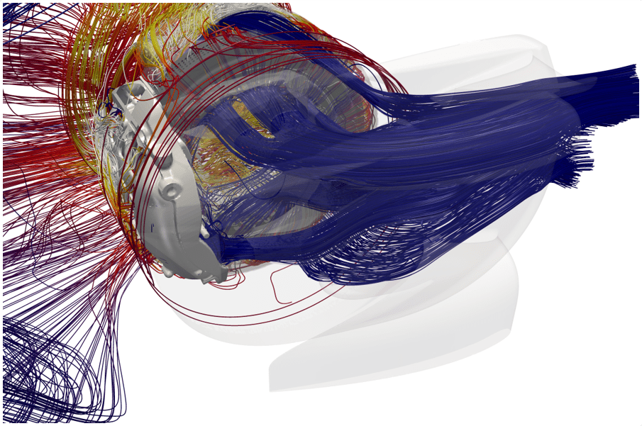 An important part of setting up and running CFD cases is to decide how much detail and accuracy to use in areas that are, relatively, aerodynamically, less important.  You will need accuracy to get the correct information in areas where airflow is much slower than free stream, so you need to ask yourself how much effort you want to spend there.  In F1 we clean up details in some slow-moving areas to make the calculations faster – aware that some internal details will not be correct.